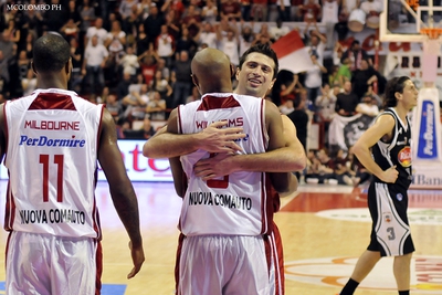 La situazione oggettivamente complicata della Giorgio Tesi Group si acuiva poi in apertura di ultimo quarto, quando Scott da sotto metteva il canestro del sorpasso ospite (63-64), ma la reazione biancorossa, in un PalaCarrara infernale, era di quelle irresistibili. Hall in penetrazione, Milbourne, ancora Hall, e Cinciarini (tutti dai 6.75), portavano Pistoia sul +11 (77-66), quando il cronometro indicava meno di cinque minuti al suono della sirena finale. Mordente, generosamente, provava a tenere in partita i suoi, ma un canestro di capitale importanza ad opera di Filloy, proprio allo scadere dei ventiquattro secondi offensivi, metteva di fatto la parola "fine" al match. I biancorossi allungavano addirittura fino al +15 (84-69), ma a quel punto era solo questione di statistiche. La serata, apertasi con la gioia e la commozione per il ritorno al PalaCarrara del piccolo Manuel, si poteva dunque chiudere con il benaugurante coro scandito dalla Baraonda Biancorossa ("e ora tutti a Bologna") e con i festeggiamenti dei ragazzi sotto la curva: davvero un ottimo modo per congedarsi dal campionato, visto che domenica prossima la serie A si fermerà per le Final Eight di Coppa Italia.