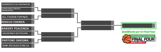 Da questa stagione, nei playoff si incrociano le prime otto del girone A (il nostro girone) con le prime otto del girone B, un confronto tecnico e tattico stimolante tra i due gironi. Stessa cosa ovviamente accade tra le prime otto del girone C e le prime otto del girone D. Le sedici squadre sono state suddivise in due tabelloni, e la squadra vincente di ogni tabellone (che sono in tutto 4) si qualificherà per le Final Four promozione, che anche quest'anno si disputeranno al Palaterme. Il weekend previsto è quello del 10 e 11 giugno, e tre delle quattro squadre qualificate accederanno alla serie A2 2017-2018. Le finali dello scorso anno sancirono la promozione di Forlì, Udine ed Eurobasket Roma, in uno spettacolo tecnico e di pubblico veramente interessante e intrigante.